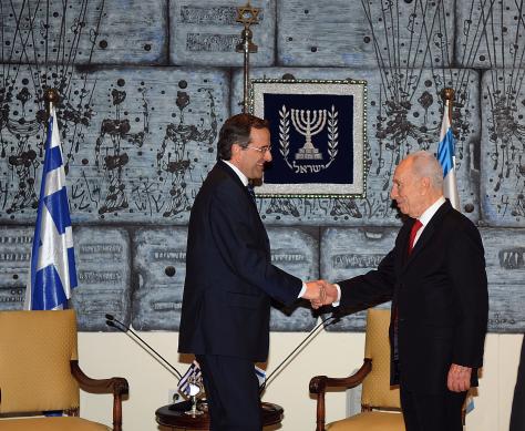 Στην αρχή νομίζαμε ότι δεν βλέπαμε καλά.Παρατηρώντας όμως καλύτερα τη φωτογραφία από τη συνάντηση Σαμαρά-Πέρες στο Ισραήλ,βεβαιωθήκαμε ότι κάτι δεν πήγαινε καλά με την Ελληνική σημαία που ήταν υψωμένη πίσω από το Πρόεδρο της ΝΔ Αντώνη Σαμαρά. Είναι ...ανάποδα με το Σταυρό κάτω! Απόδειξη ότι ακόμη και στα πολύ,πολύ οργανωμένα κράτη όπως το Ισραήλ,γκάφες γίνονται.