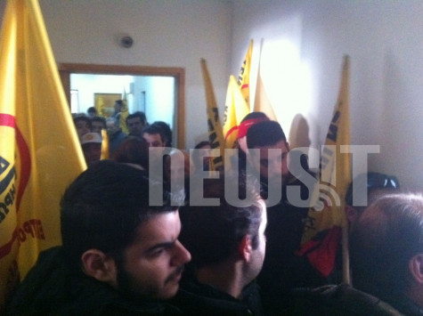 Λίγα λεπτά πριν από τις 13:00 έκαναν... ντου στο γραφείου του υπευθύνου της εταιρίας, ο οποίος ισχυρίστηκε ότι η σύμβαση με τη ΔΕΗ, για τη διακοπή ρεύματος σε όσους δεν πληρώσουν το ειδικό τέλος ακινήτων, έχει διακοπεί.