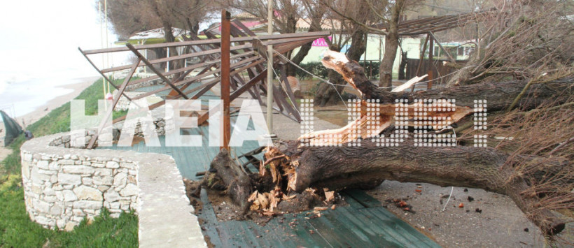 Μεγάλα κλαριά και κορμοί είναι διάσπαρτοι στην ευρύτερη περιοχή της Κουρούτας προς την Αμαλιάδα, ενώ και στο Παλούκι, οι θυελλώδεις άνεμοι έχουν προκαλέσει πολλά προβλήματα.