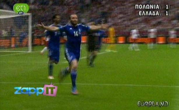 Λίγα λεπτά μετά τον πρώτο αγώνα της Εθνικής στη Βαρσοβία, παρακολουθήσαμε μέσα από την εκπομπή της ΕΤ1, "Euroland", τα καλύτερα στιγμιότυπα του αγώνα και το γκολ του Δημήτρη Σαλπιγγίδη! Του πρώτου Έλληνα που σκόραρε σε Παγκόσμιο Κύπελλο και Ευρωπαϊκό Πρωτάθλημα φέτος!