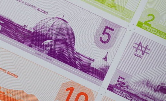 Η πόλη της Νάπολης ανακοίνωσε σήμερα την επεξεργασία ενός σχεδίου 70 εκατ. ευρώ για την έκδοση ειδικών ομολογιών, ή χαρτονομισμάτων –τα ‘νάπο’—τα οποία θα χρησιμοποιούνται εν είδει τοπικού νομίσματος, αποβλέποντας στην αναθέρμανση της τελματωμένης οικονομίας της Μητρόπολης του ιταλικού Νότου.