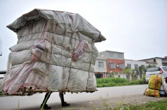τα έξοδά του καθώς και του σπιτιού του συλλέγοντας πλαστικά αντικείμενα που βρίσκει στους δρόμους των κινεζικών πόλεων και στη συνέχεια τα πουλάει. Το πρώτο του κινητό σπίτι το κατασκεύασε πριν από 5 χρόνια προκειμένου να προστατευτεί από το κρύο και τη βροχή.