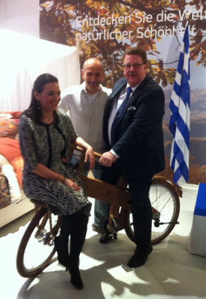 Στην έκθεση του Βερολίνου, την ανέβασε πάνω σε ένα ξύλινο ποδήλατο της γνωστής μάρκας Coco Mat, αλλά και την έπεισε να στηθεί για να την φωτογραφήσει. Σύμφωνα μάλιστα με το tourismlobby, αργότερα το έριξε στο χορό και προσπαθούσε να μάθει τα βήματα από το συρτάκι. Το ρεπορτάζ αναφέρει πως ο Φούχτελ επανέρχεται με κάποια νέα προγράμματα, στις «παρυφές», ας το θέσουμε έτσι, του τουρισμού Υγείας, αρχής γενομένης φέτος, αυτήν την περίοδο, από τη Ρόδο.