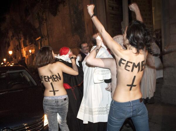 Στην πραγματικότητα όμως φαίνεται πως οι προθέσεις τους είναι άλλες, με βάση τον τρόπο που έχουν βρει για να… διαμαρτύρονται! Βγαίνουν στους δρόμους γυμνόστηθες και προκλητικές, με γραμμένα επάνω τους συνθήματα όλων των ειδών… απο αιτήματα για ειρήνη και ισότητα, μέχρι αισχρές προβολές στα θεία, με αναπαραστάσεις δολοφονίας και σεξουαλικών ενεργειών.