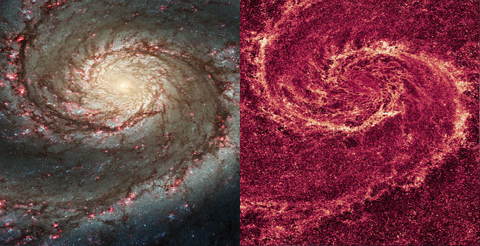 Ορισμένες από τις εικόνες που έχουν καταγράψει τα επίγεια και διαστημικά τηλεσκόπια από τον Μ51Α ή Γαλαξία της Δίνης, που θυμίζει αρκετά είναι η αλήθεια τους σχηματισμούς της «Εναστρης νύχτας»
