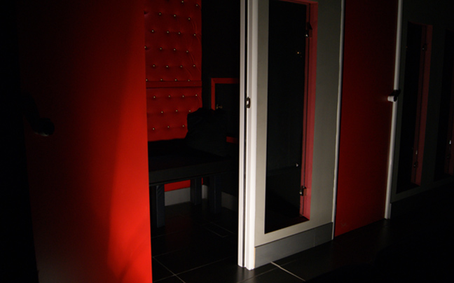 Η ιδιαιτερότητα τους είναι το μικρό παράθυρο που βρίσκεται εντός τους, το οποίο σου δίνει την δυνατότητα είτε να διασφαλίσεις την ιδιωτικότητά σου, τραβώντας την βαριά μαύρη κουρτίνα, είτε να μοιραστείς τις ιδιαίτερες στιγμές σου με τους «ενοίκους» του διπλανού δωματίου. Στο τέρμα του εξώστη υπάρχουν άλλοι δύο χώροι, ο ένας διαμορφωμένος σαν καθιστικό με ένα διακριτικό κρυφό φωτισμό στην απόχρωση του μωβ, και ο άλλος εντελώς dark.