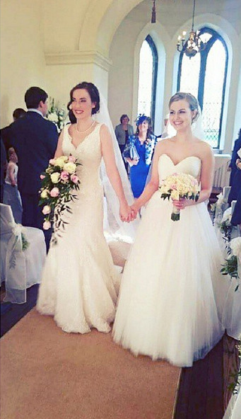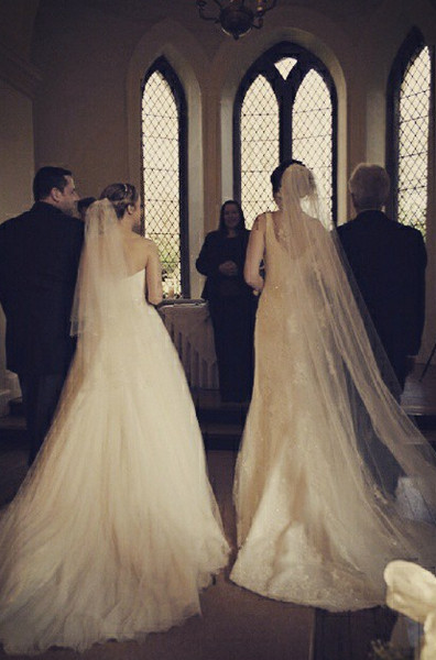 Παρότι έσπασαν την παράδοση ως προς το κομμάτι που το έτερο ήμισυ δεν μπορεί να δει το νυφικό πριν το γάμο, στα υπόλοιπα ήταν άκρως παραδοσιακές. Και τις δύο τις συνόδευσαν στην εκκλησία οι πατεράδες τους, κρατούσαν λουλούδια, φωτογραφήθηκαν με τον παραδοσιακό τρόπο στην εκκλησία αλλά και με τις φίλες τους!