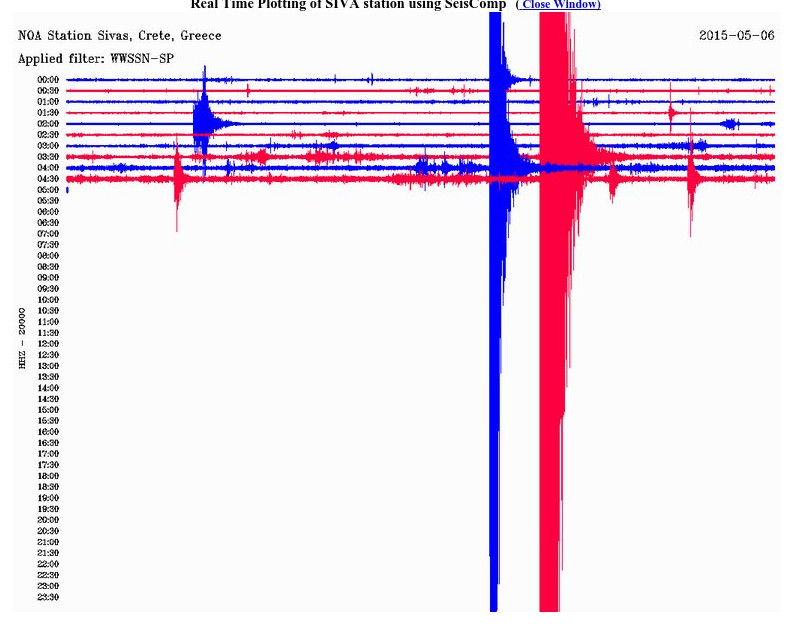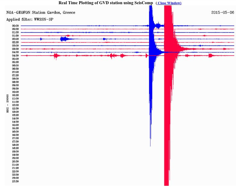 Η δόνηση όπως καταγράφηκε από τον σεισμογράφο που είναι τοποθετημένος στη Γαύδο