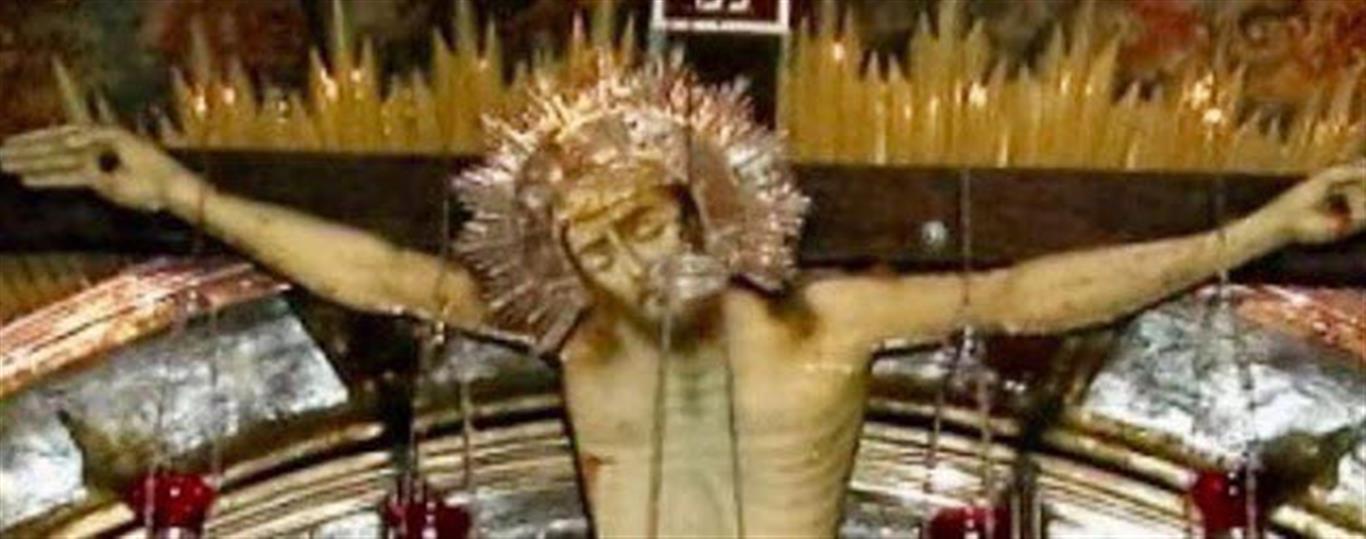 Χθες το απόγευμα οι πατέρες των Ιεροσολύμων πρόσεξαν σαν ένα φως στο Γολγοθά και αμέσως παρατήρησαν ότι τα μάτια του Χριστού ήταν ανοικτά όχι όπως πάντα κλειστά.